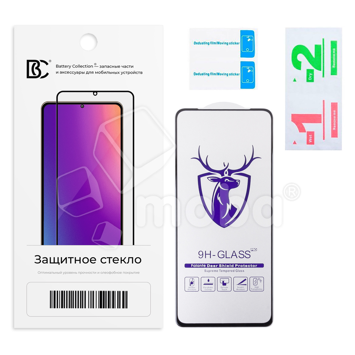 - Защитные стекла "UV комплект" (упаковка, полное покрытие, клеится на UV клей из комплекта)